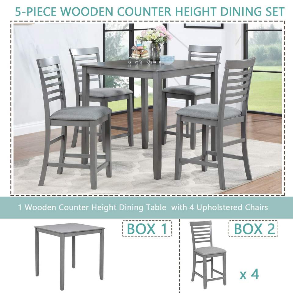 Set da Pranzo in Legno a 5 Pezzi per 4 Persone, Tavolo da Cucina Alto con Sedute Imbottite, Set da Sala da Pranzo Quadrato
