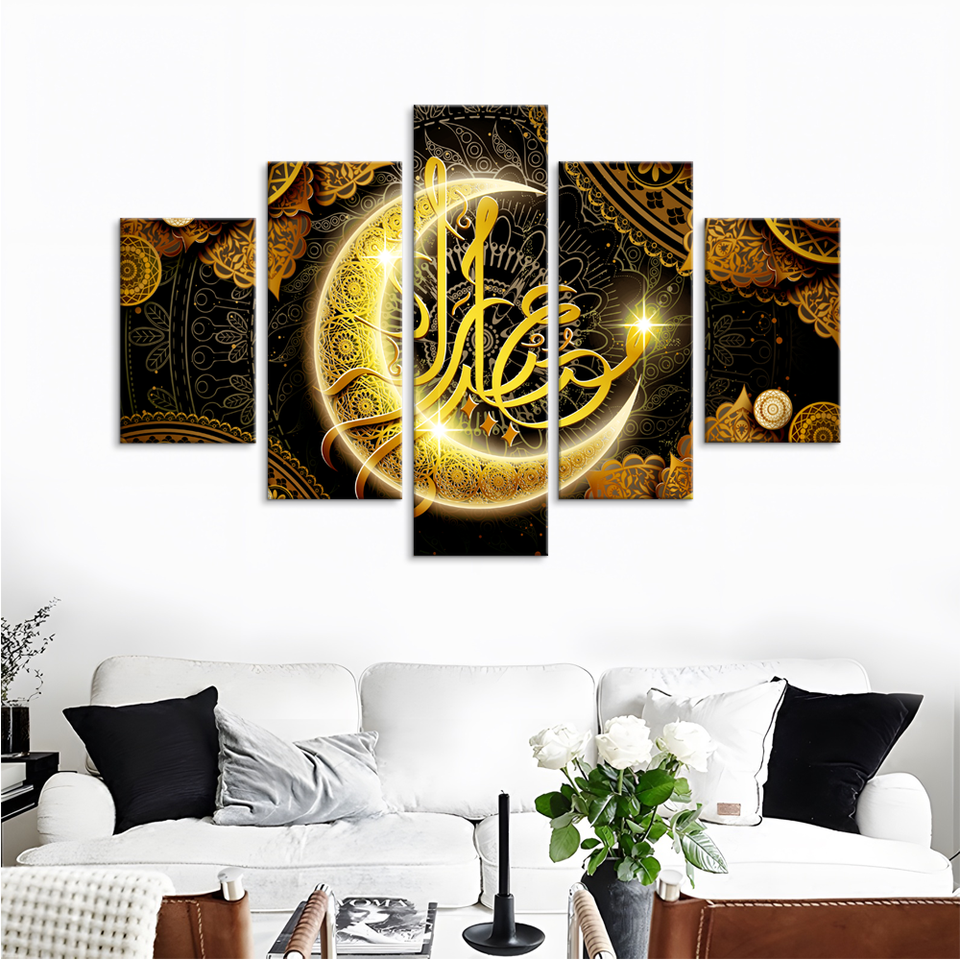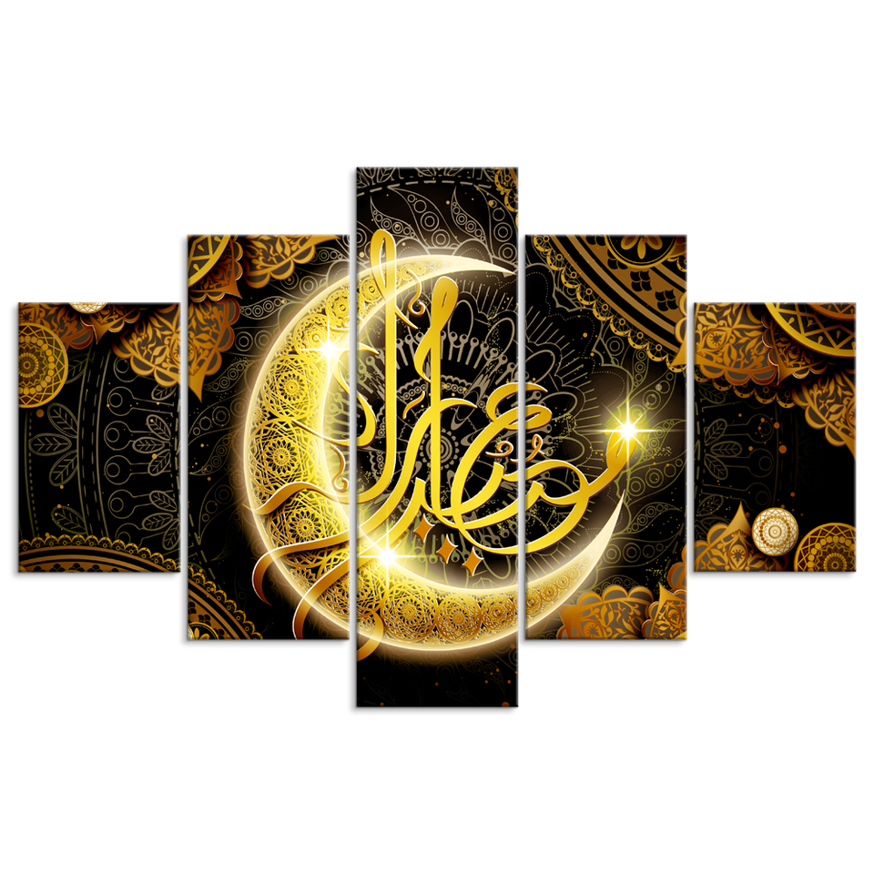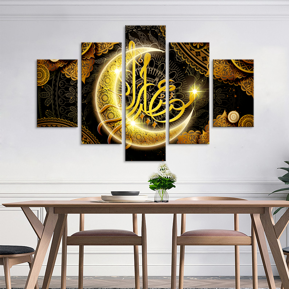 5 Pieces Wall Art Canvas Painting Islamic Religion Moon Poster Modern for Living Room Bedroom Home Decorations Modular