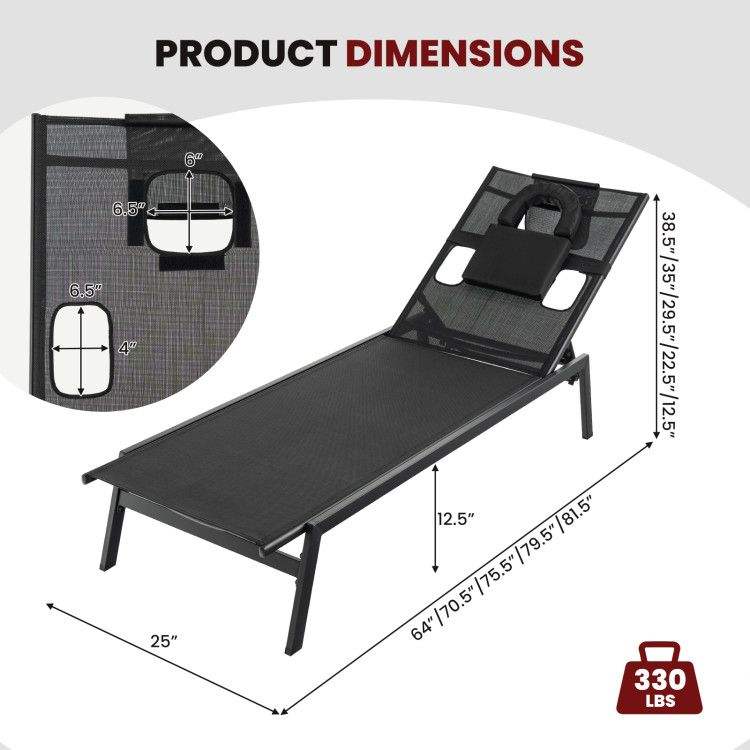 5-Position Adjustable Patio Sunbathing Lounge Chair for Tanning