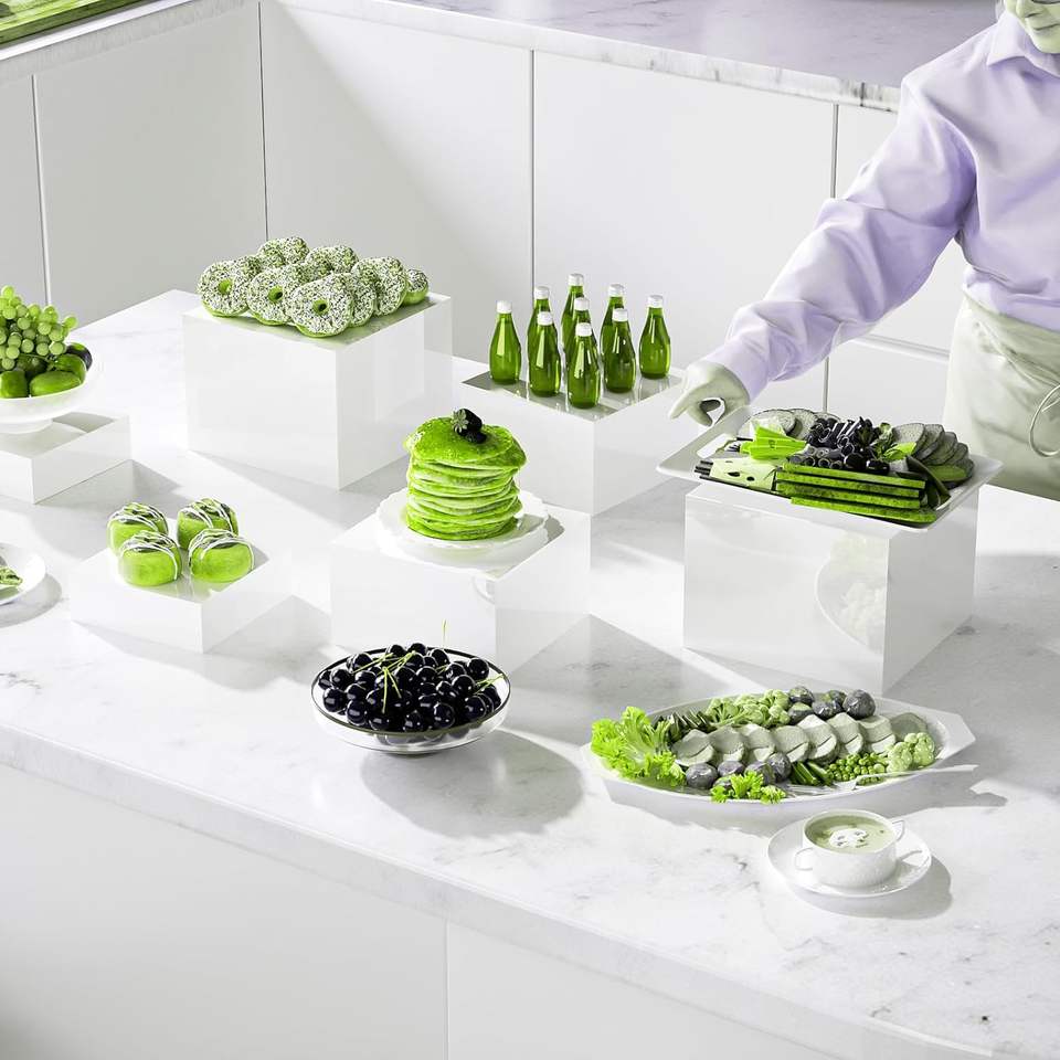 Espositori in Acrilico a 5 Lati con Fondo Cavo per Matrimoni, Cupcake, Caramelle, Cibo, Feste, Brunch, Buffet