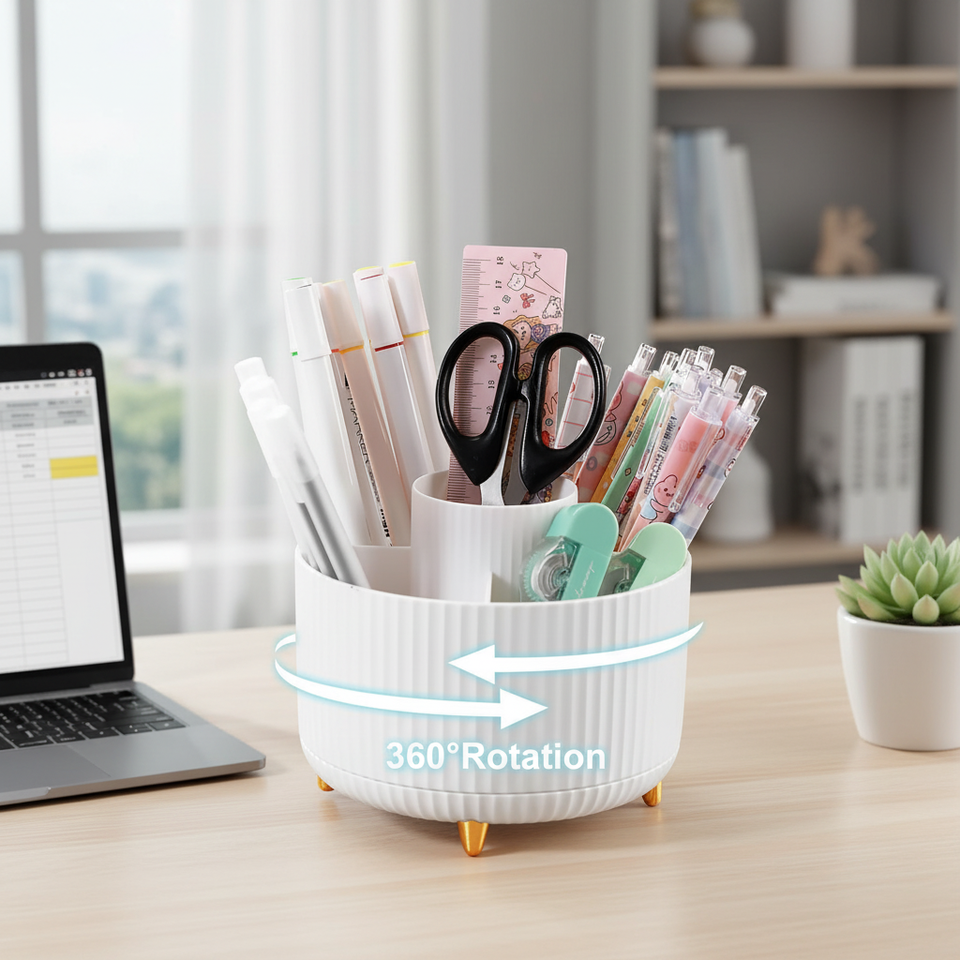 Portapenne Girevole a 360 Gradi con 5 Scomparti, Organizzatore da Scrivania Rotante, Accessori per Archiviazione e Cancelleria