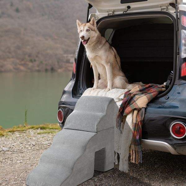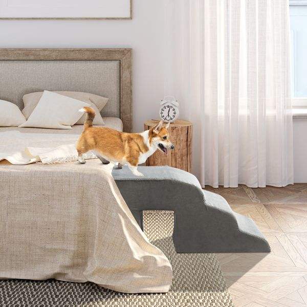 Scala a 5 Gradini Grigia per Cani e Gatti, Arredamento Premium per Animali Domestici