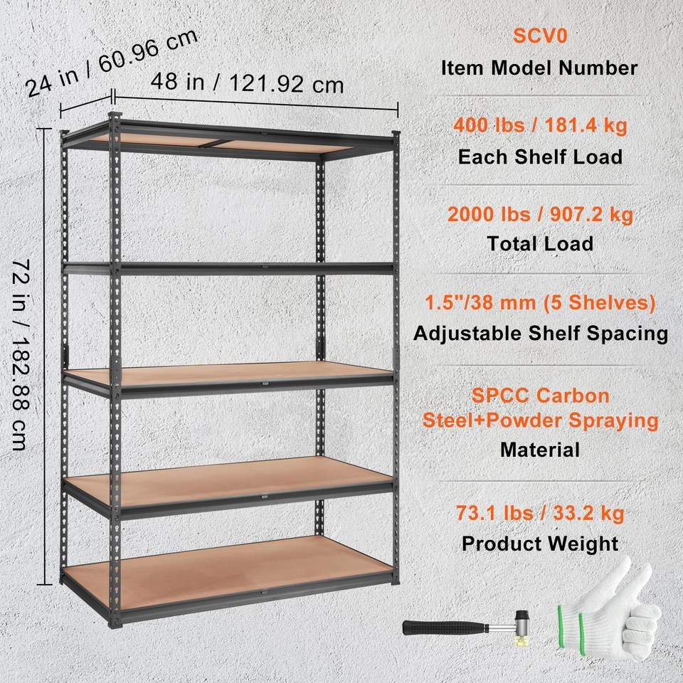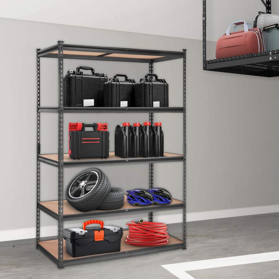 Scaffale da Garage a 5 Ripiani Regolabili, Capacità 900 Kg, Scaffalatura in Metallo Nero per Stoccaggio e Organizzazione, 122 cm
