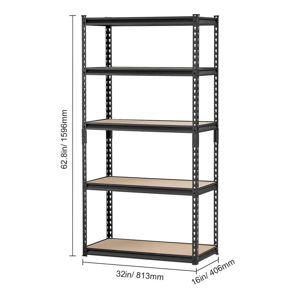 Scaffale Metallico Regolabile a 5 Ripiani, Capacità 900 kg, 40,6 cm P x 81,3 cm L x 159,4 cm H, Soluzione per Stoccaggio in Garage