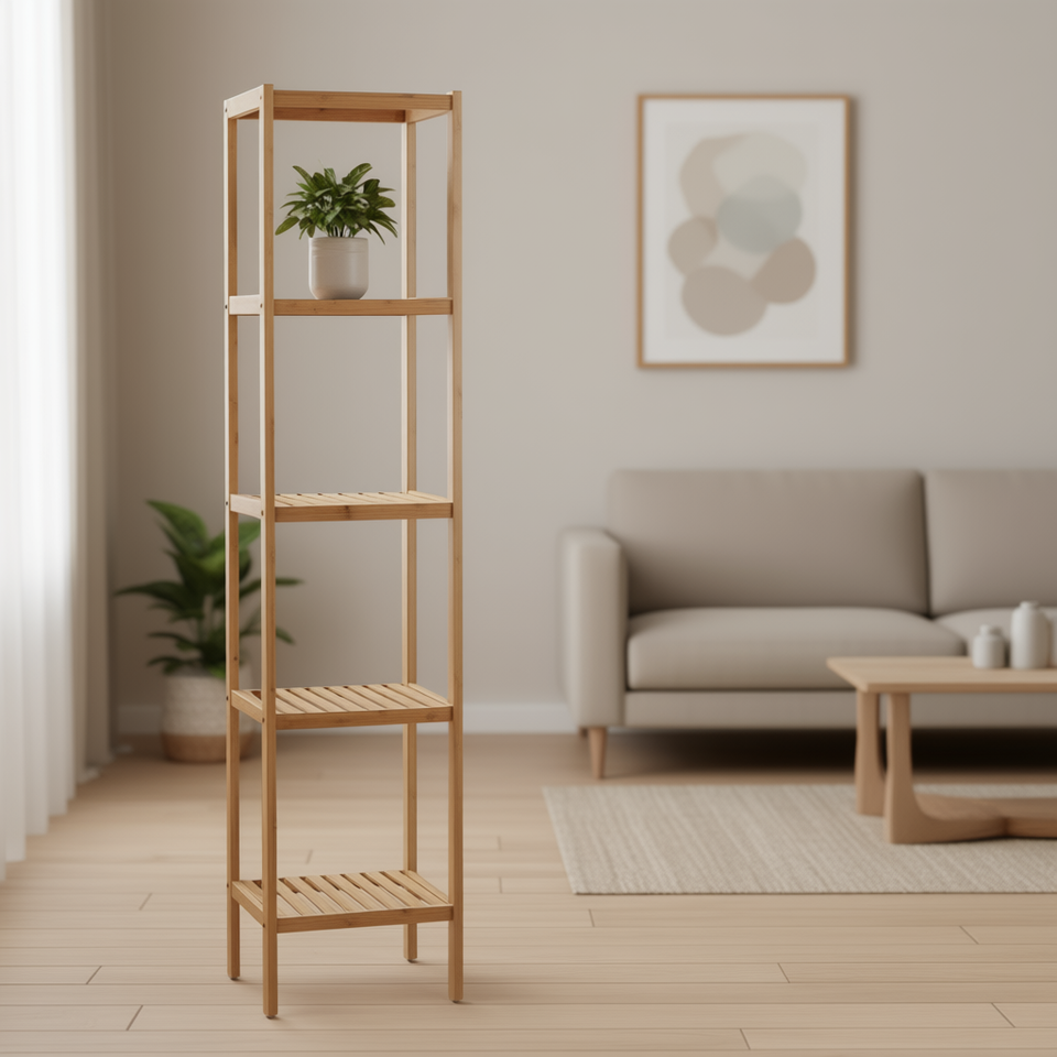 Scaffale a 5 livelli in bambù, porta piante, espositore autoportante, scaffale minimalista per soggiorno, libreria D0100HRICMX