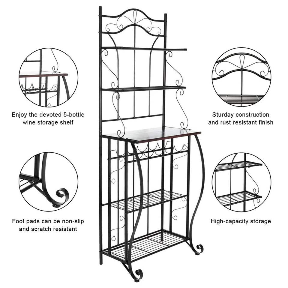 Scaffale da Cucina a 5 Ripiani in Metallo Nero 63,5 x 40,6 x 15,2 cm, Supporto per Forno a Microonde, Organizzatore per Vini, Postazione di Lavoro, Scaffale per Pasticceria