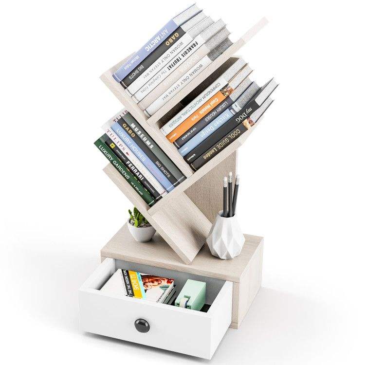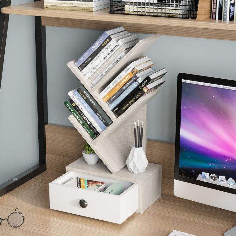 Libreria a 5 Ripiani con Cassetto, Design Elegante con Soluzione di Archiviazione