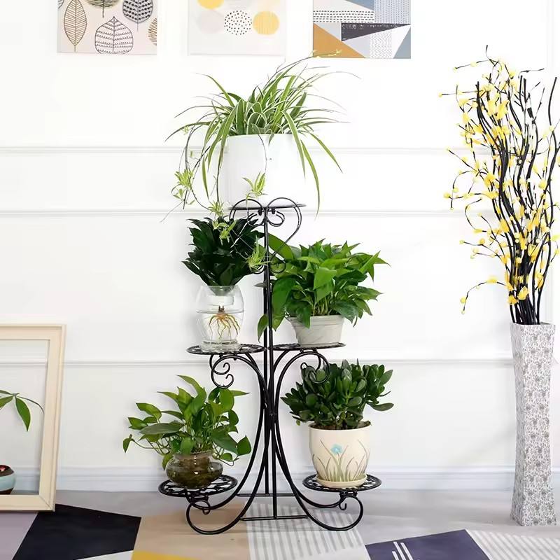Portavasi a 5 Ripiani in Ferro Battuto, Espositore Verticale in Metallo, Scaffale per Piante da Interno ed Esterno per Angoli