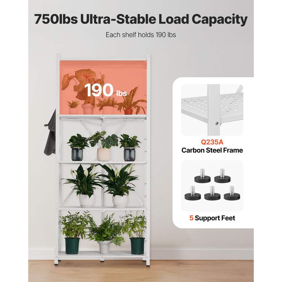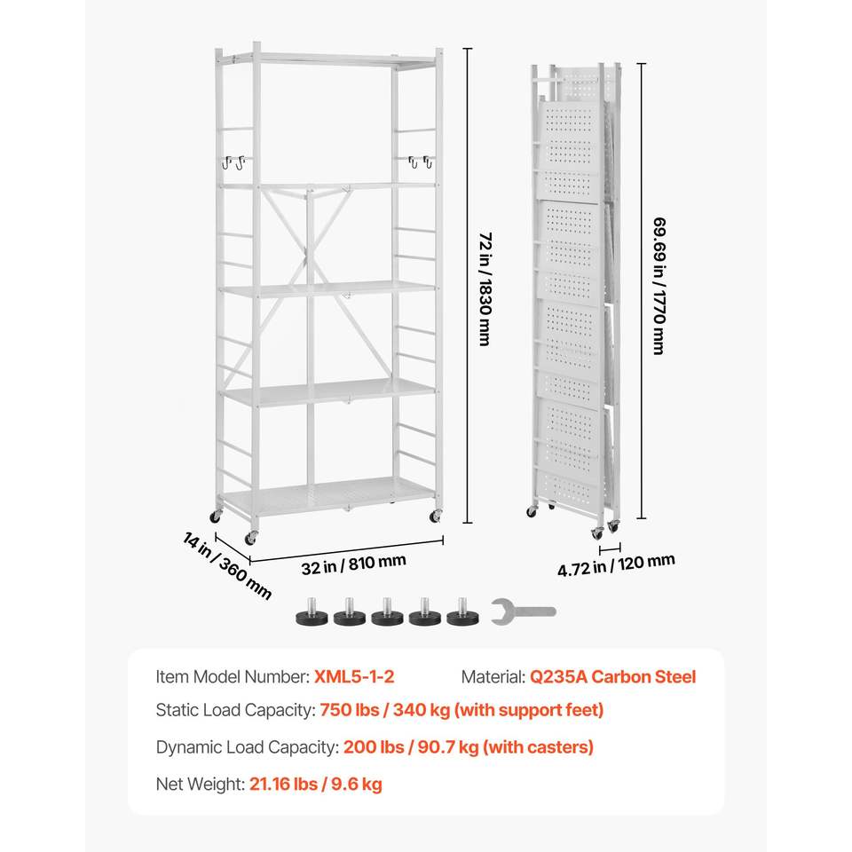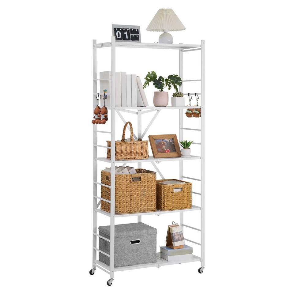 Scaffale Pieghevole a 5 Ripiani 81L X 36P X 183H Pollici, 5 Ruote, Nessun Montaggio Richiesto, Unità Organizzativa in Metallo Pieghevole