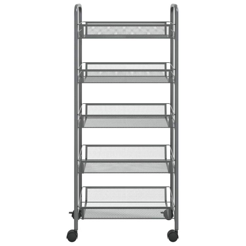 5-Tier Gray Iron Kitchen Trolley 18.1"x10.2"x41.3" Storage Rack