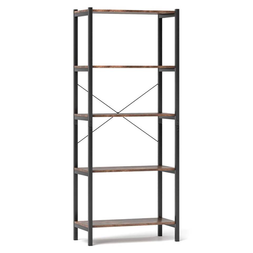 Libreria Industriale a 5 Ripiani con Struttura in Metallo, Scaffale Espositivo e Contenitore