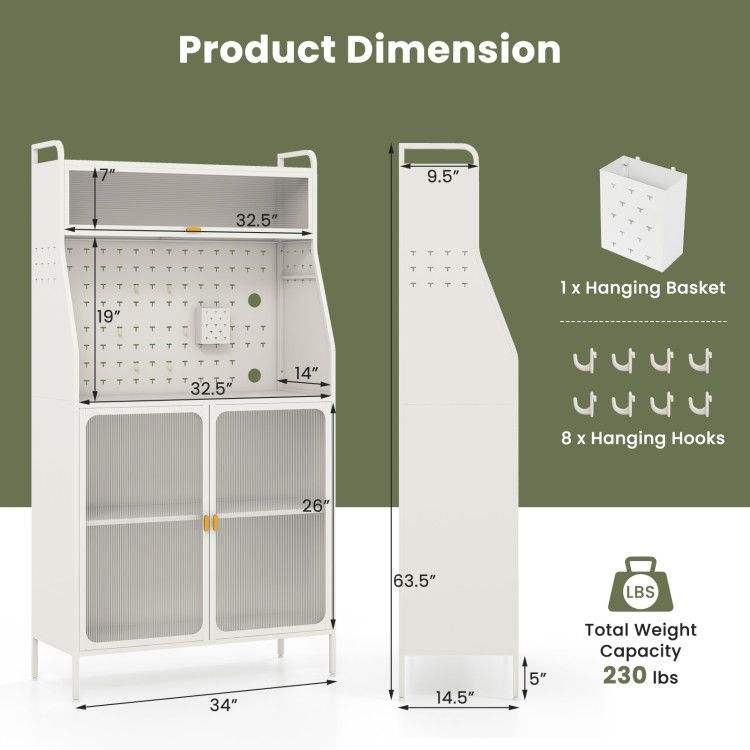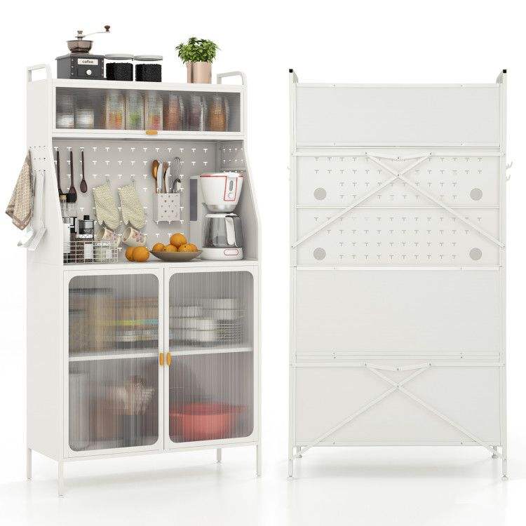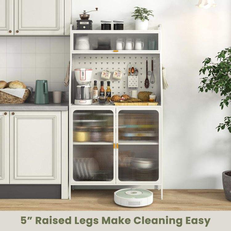 Scaffale da Cucina a 5 Ripiani in Metallo con Anta Trasparente Ribaltabile e Pannello Forato per Utensili