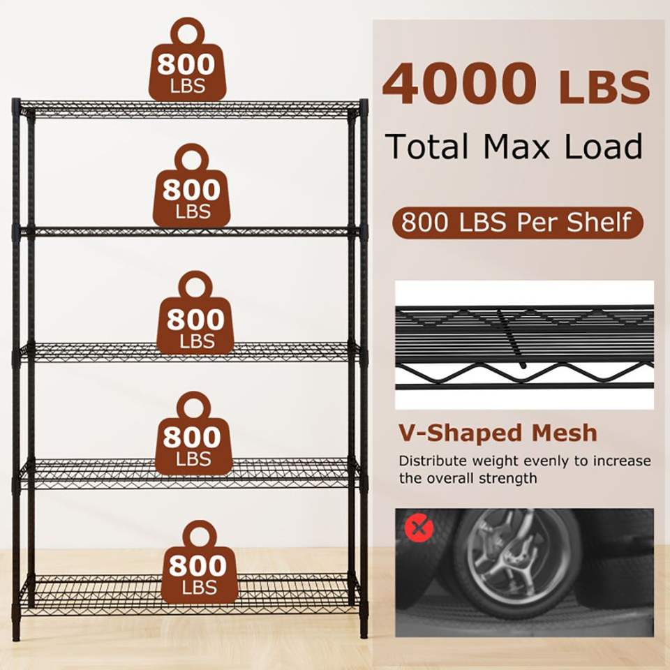 Scaffalatura Metallica a 5 Ripiani per Garage con Rete a V