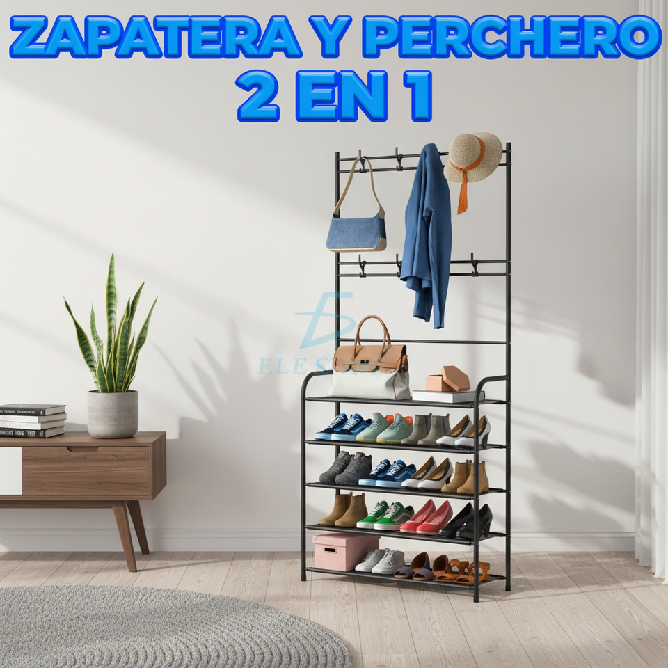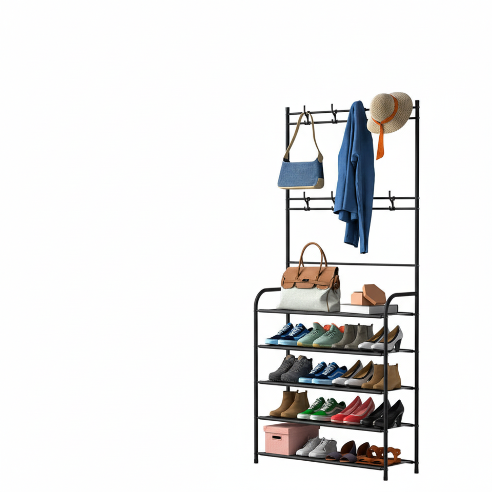 Organizzatore in metallo di tipo moderno a 5 livelli con appendini a doppia barra per scarpe e vestiti