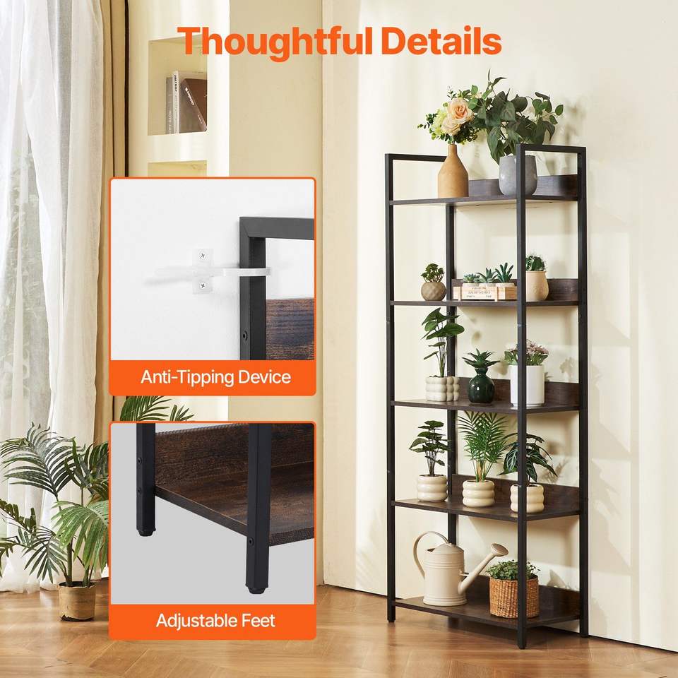 Scaffale in metallo aperto a 5 livelli per librerie da soggiorno e da ufficio