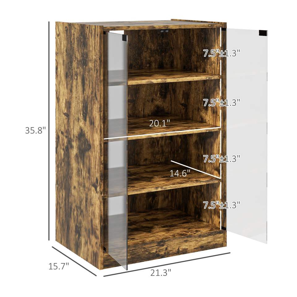 5-Tier Rustic Brown Media Cabinet with Adjustable Shelves and Tempered Glass Doors Cable Management for Living Room