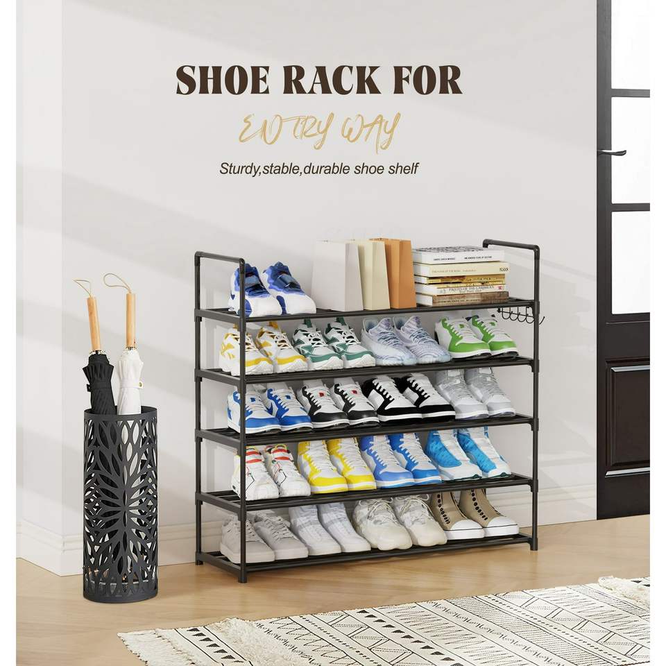 Scarpiera Impilabile a 5 Livelli, Lunghezza 35,5 Pollici, Struttura in Metallo Nero, Contiene 25-30 Paia