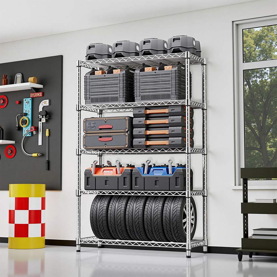 Scaffale di Stoccaggio in Acciaio a 5 Ripiani, Capacità 1750 LBS, Organizzatore per Casa, Cucina, Ufficio, Garage