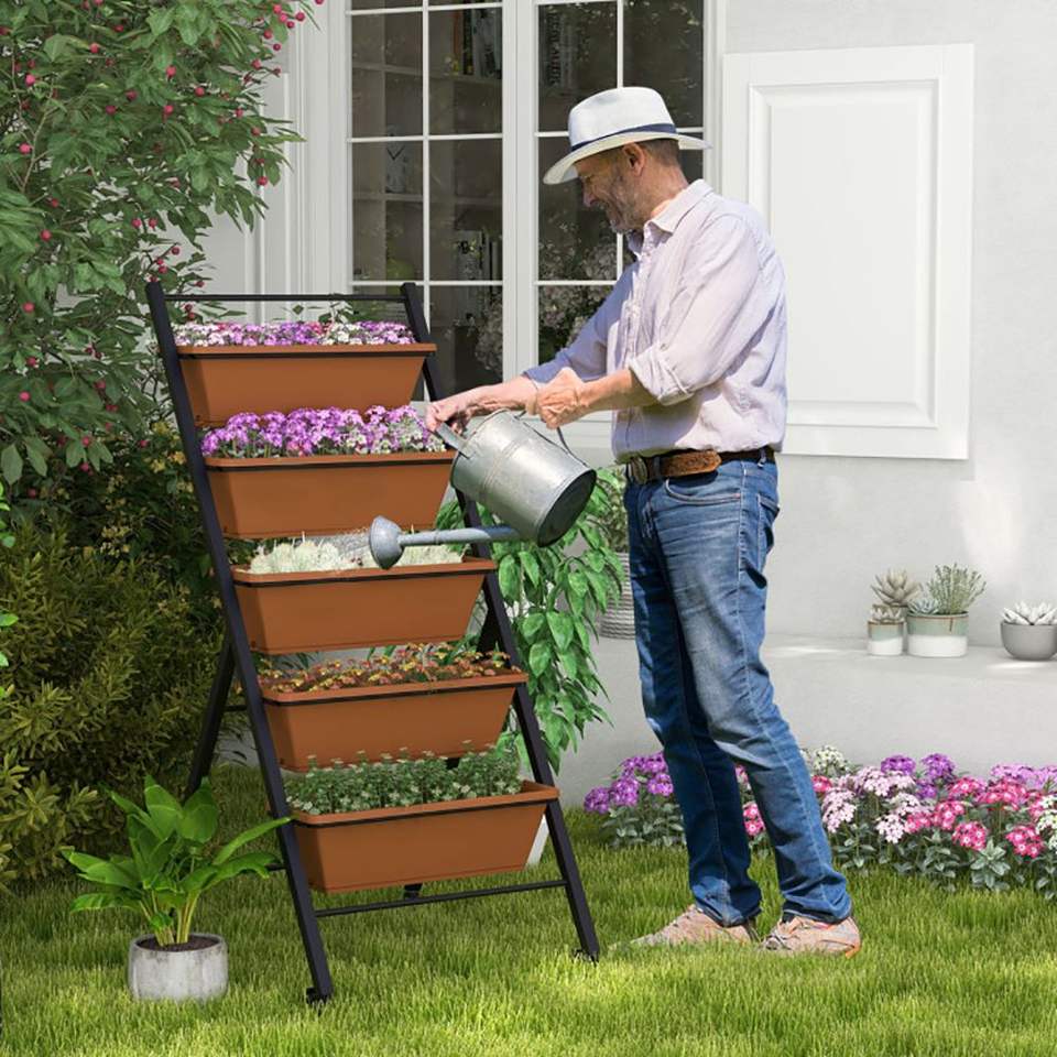 Fioriera rialzata a 5 livelli con ruote e contenitori per vasi e fioriere