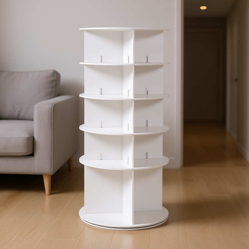 White 5 Tier Rotating Shoe Rack Freestanding Storage Carousel Organizer Living Room Furniture Modern Minimalist Design