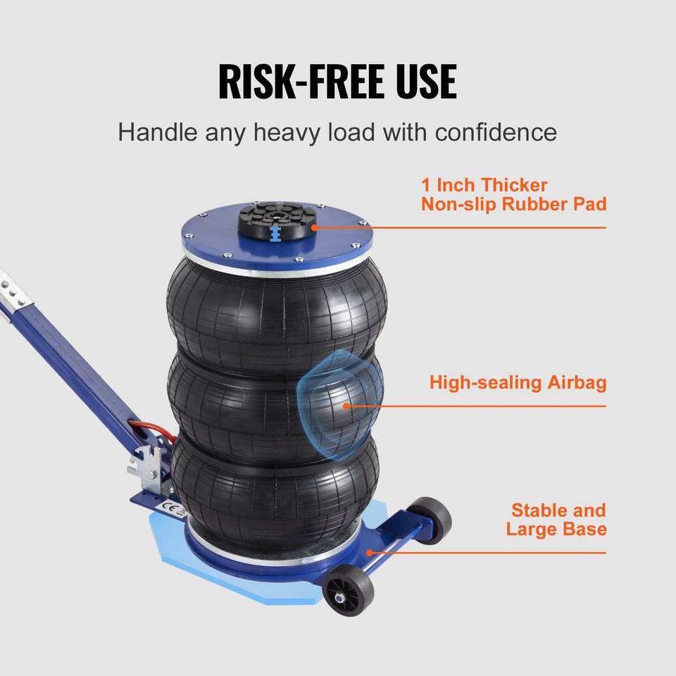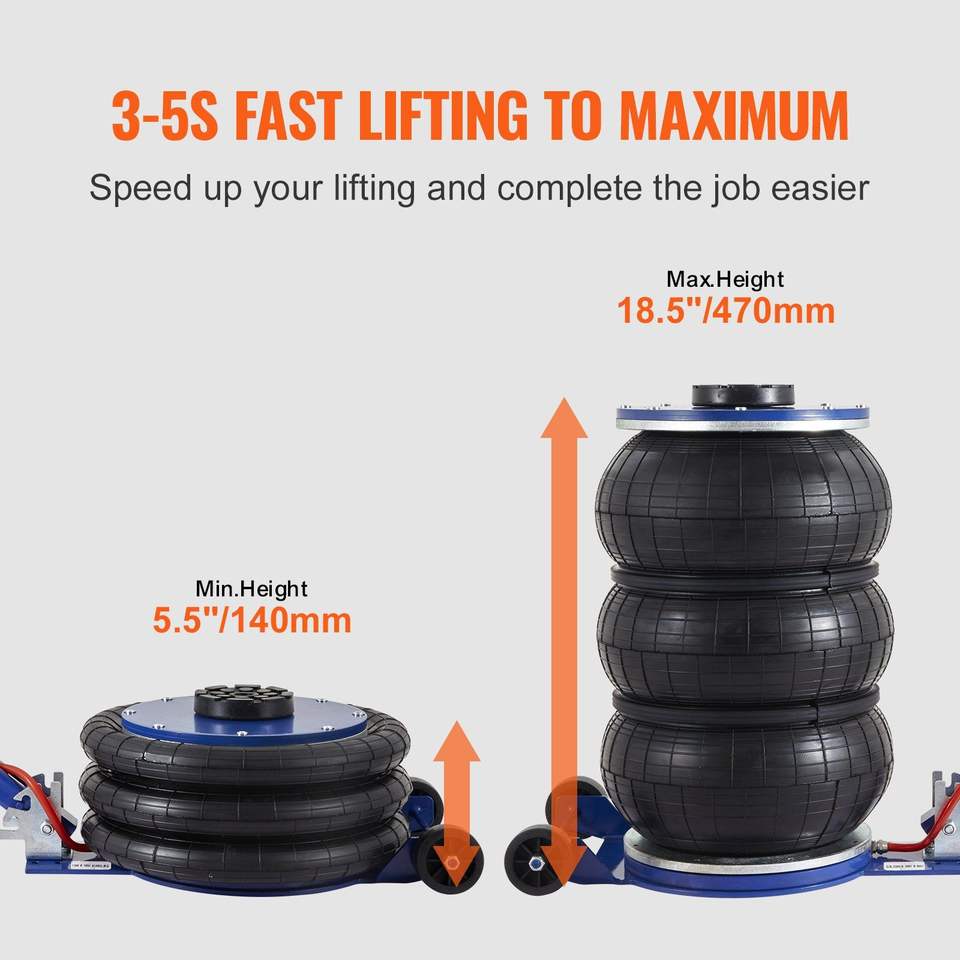 Martinetto Pneumatico a Tre Sacche da 5 Tonnellate/11000 Libbre, Sollevamento Rapido 3-5s, Altezza 18,5 Pollici/470 mm, con Sei Tubi in Acciaio