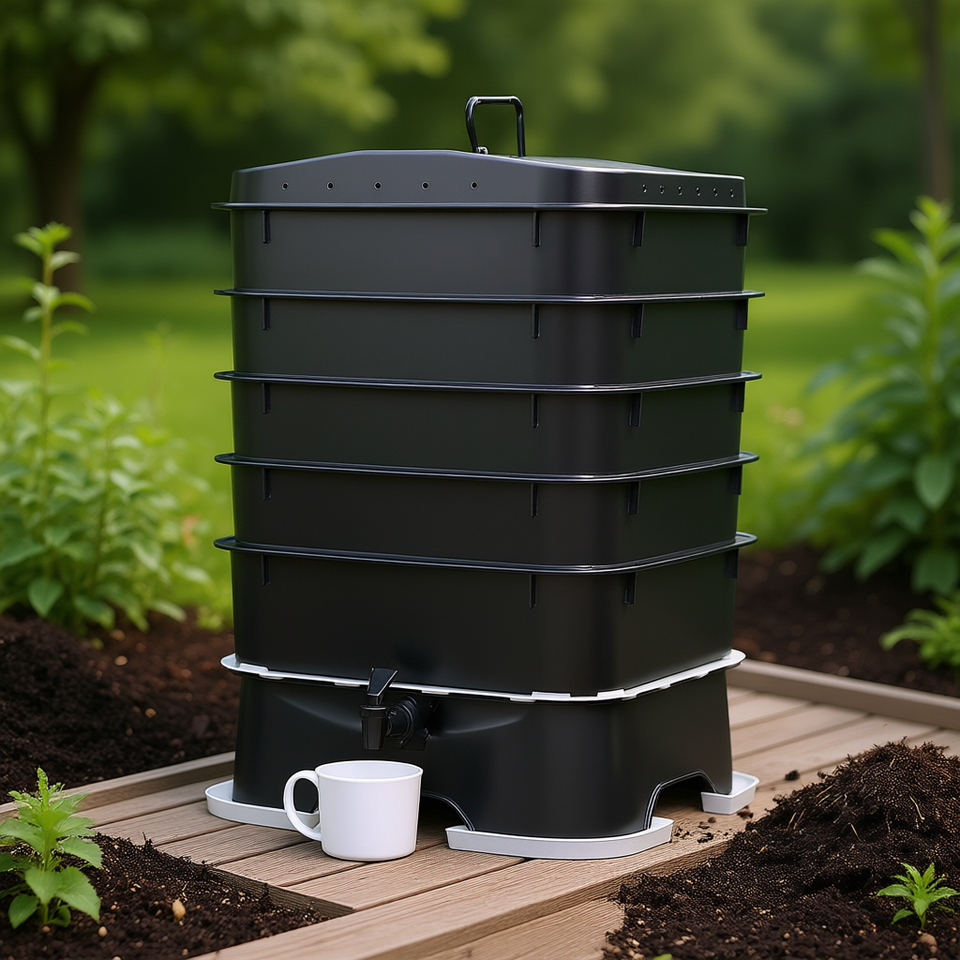 Kit compostiera a vermi da 50 litri con 5 vassoi e rubinetto di scarico per vermicompostaggio interno ed esterno, contenitore per il riciclo dei rifiuti alimentari