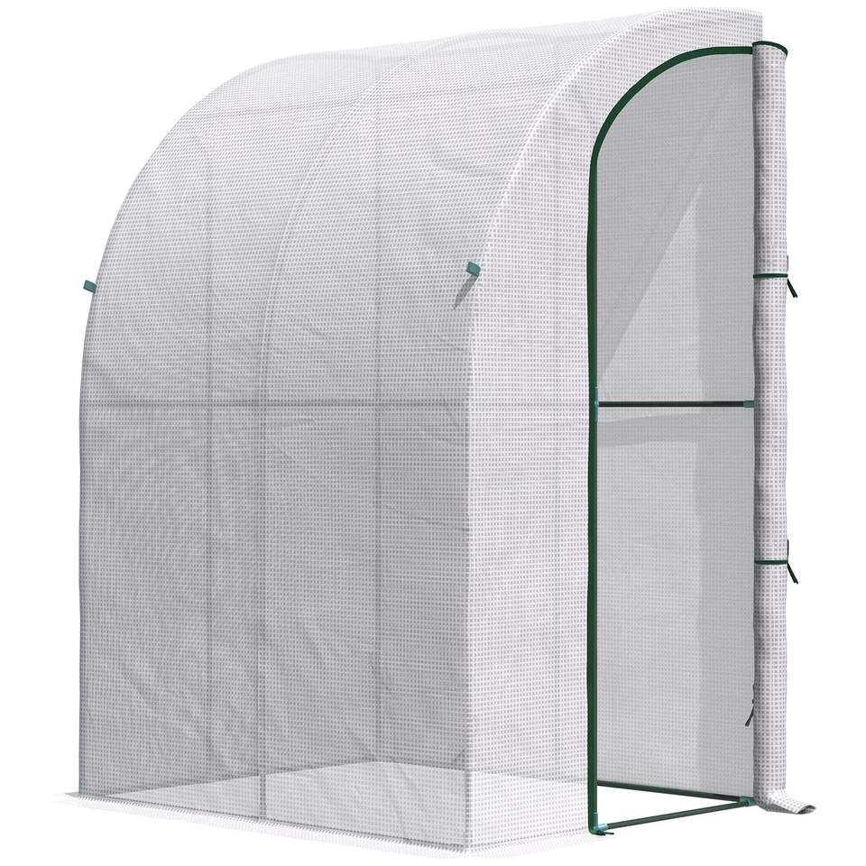 Serra da Giardino 5x4x7 con Copertura in PE Bianco, a Muro, per Piante da Esterno, con Finestra Avvolgibile
