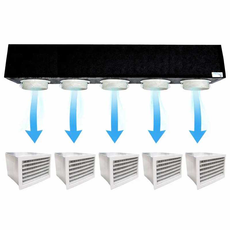 Sistema di Ventilazione HVAC Completo con Plenum Canalizzato in Poliuretano a 5 Zone e Griglia in PVC