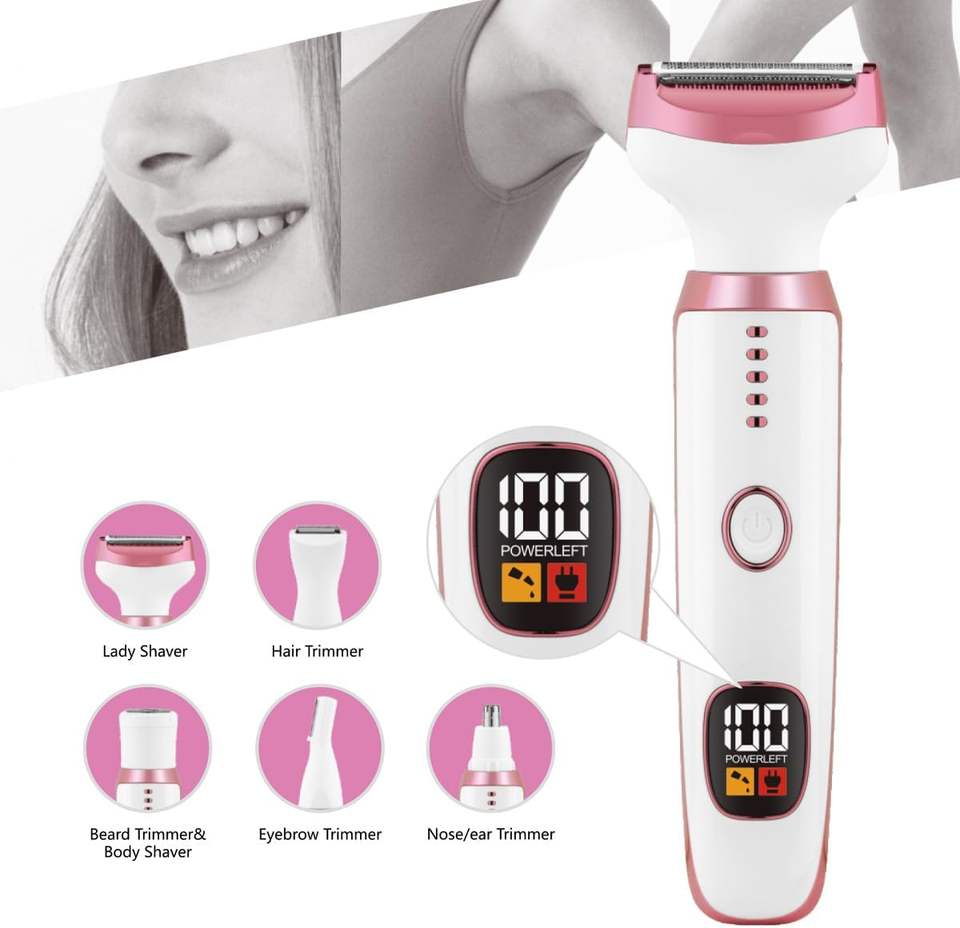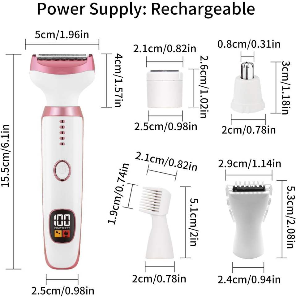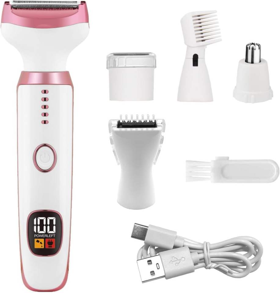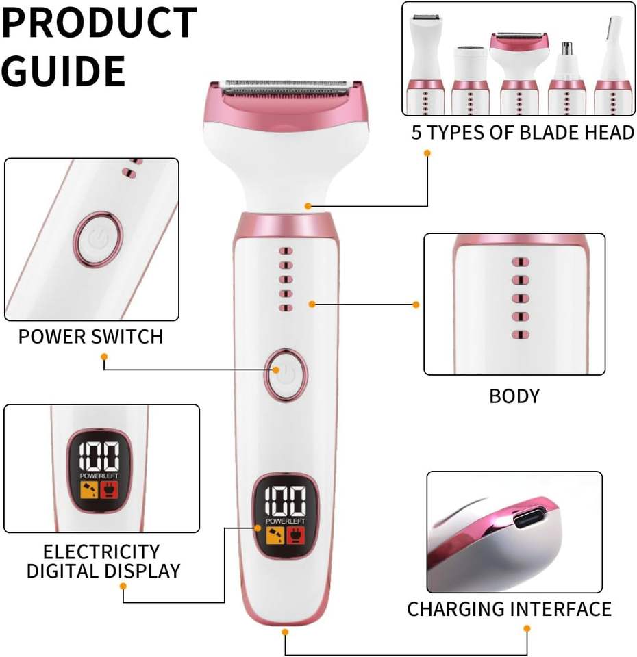 Rasoio Elettrico 5 in 1 per Donne, Depilatore per Naso, Viso, Sopracciglia, Braccia, Gambe e Ascelle - Trimmer per Uso Domestico
