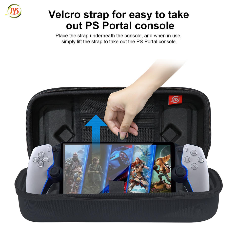 Set di Protezione 5 in 1 con Borsa Portatile in EVA per PS5 Portal, Include Custodia Protettiva in TPU, Pellicola Temperata e Kit Copri-Joystick JYS-P5195