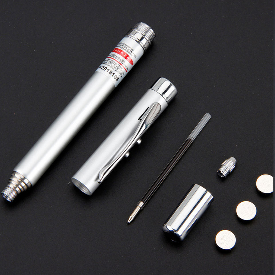 5 in 1 Red Laser Pointer Retractable Telescopic Antenna Teaching Pointer Magnet Pen LED Flashlight Ball Pen with Metal Case