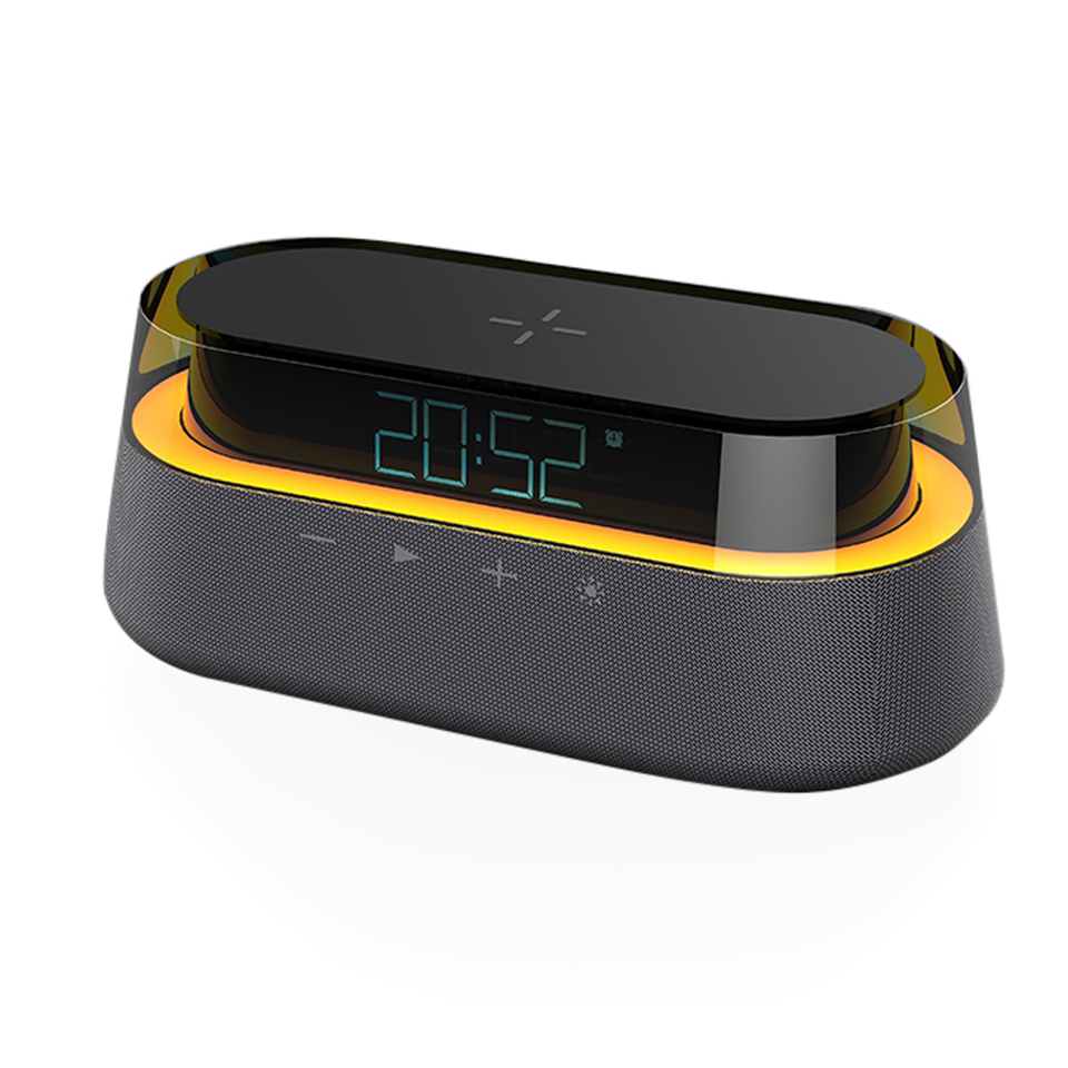 5 in 1 Stereo for Speaker RGB Light 15W Fast Wireless Charging Alarm Clock Desktop FM Radio