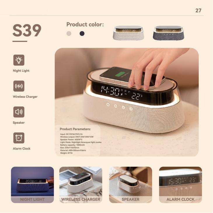 feature:Radio, Alarm, Display Visual Information, colorful LED light, Clock, Phone Function, Miracast, Wireless Charger for Mobile Phone