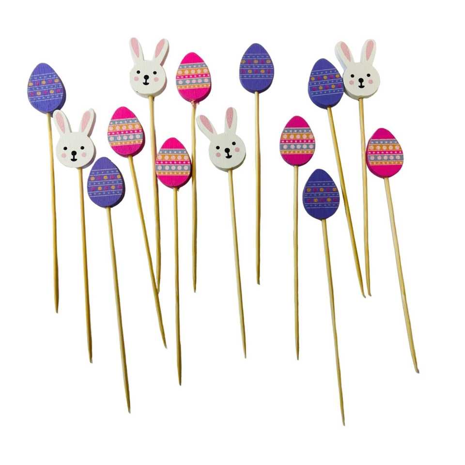 Stuzzicadenti in bambù da 5 pollici, 100 pezzi, per decorazioni pasquali con disegni di cactus e fenicotteri.