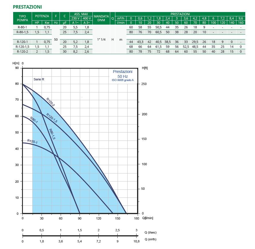 Pompa Sommergibile Elettrica ad Alta Pressione di Qualità Italiana da 5 Pollici Serie R-120-1M con Girante Centrifuga per Pompaggio di Acqua Pulita