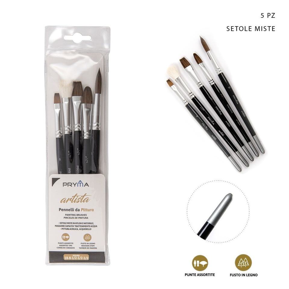5-piece Artist Brush Set No. 18-8-1/2-1/2-1/2 - Art Supplies