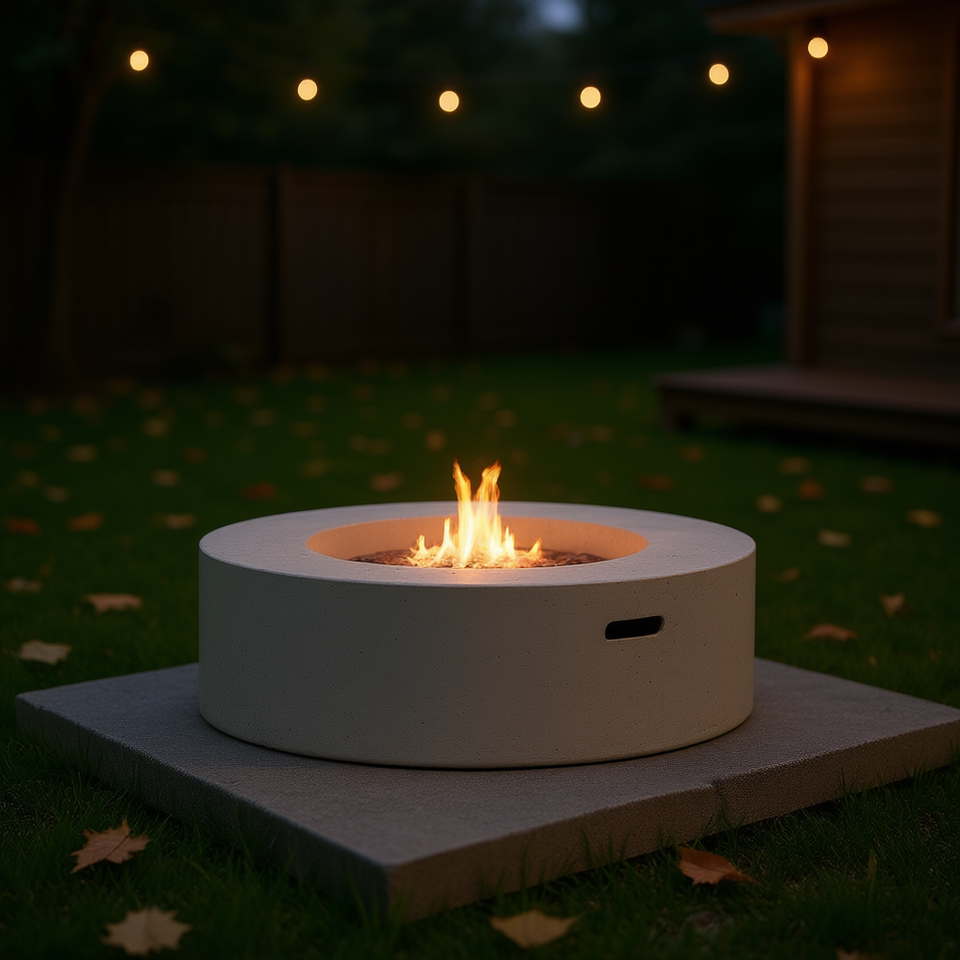 Braciere Rotondo in Calcestruzzo MgO a Propano 50000 Btu per Esterni Grigio Chiaro Autoportante
