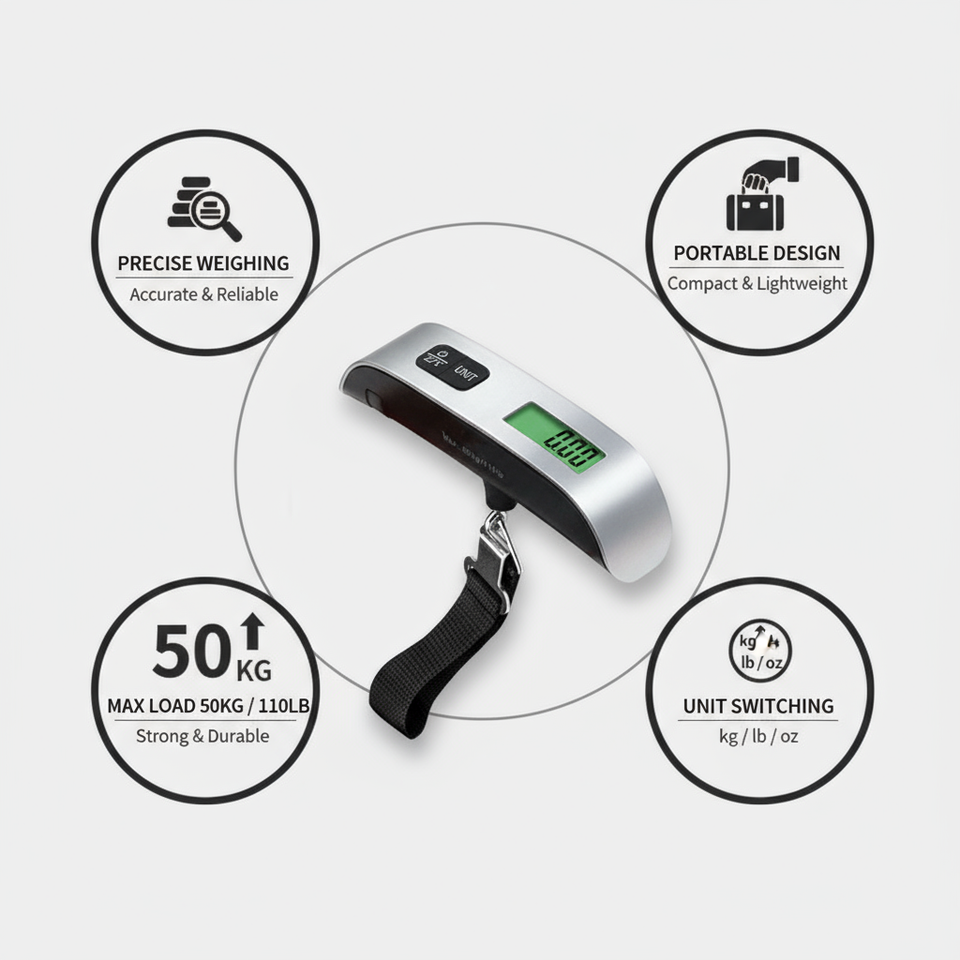 Bilancia Digitale Portatile da 50 Kg per Bagagli a Mano