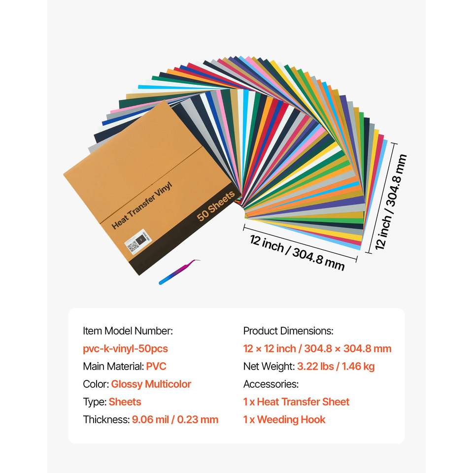 Confezione da 50 Pezzi di Vinile Termoadesivo in Colori Assortiti 12x12 Pollici, Facile da Tagliare, per Accessori Fai-da-Te per Borse