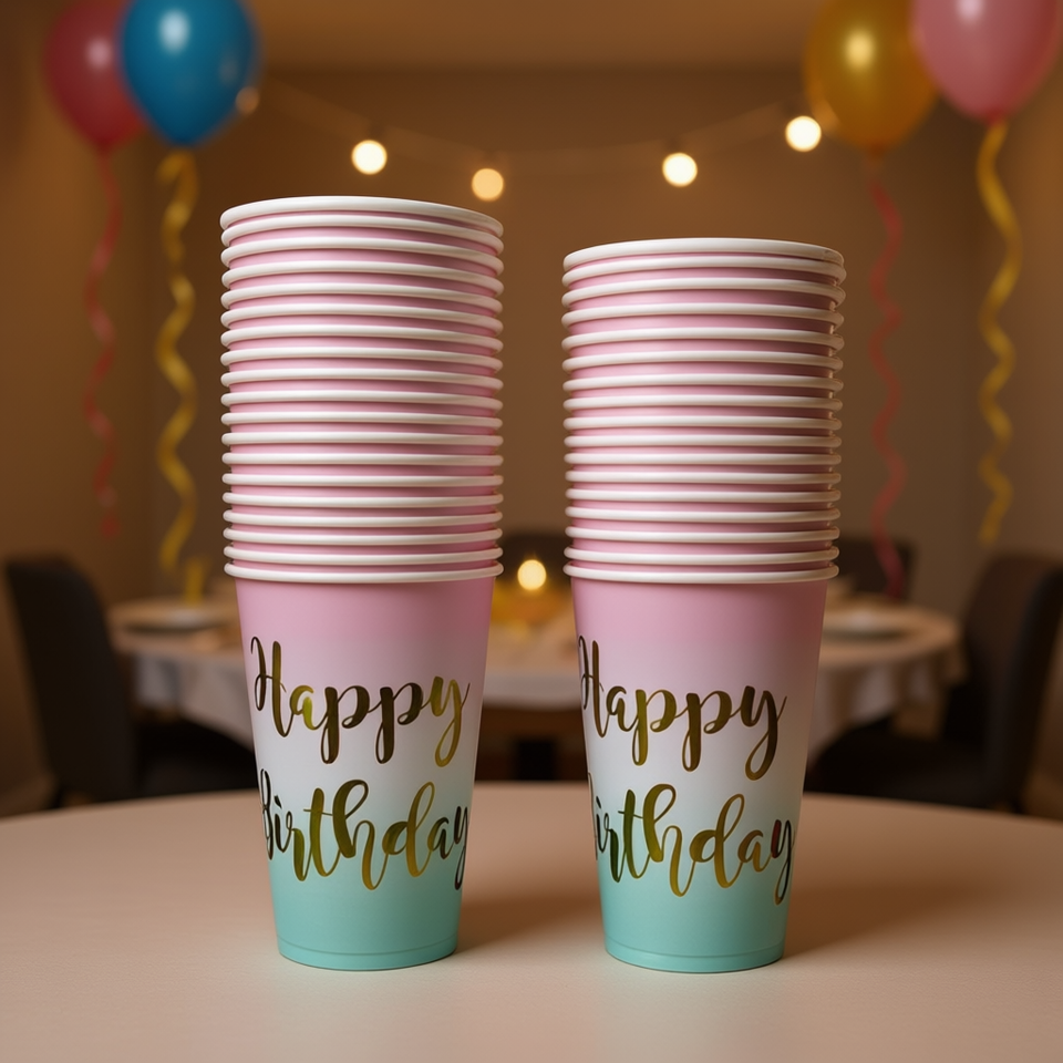 Bicchieri di Carta per Compleanno 50 Pezzi, Articoli per Feste Usa e Getta, Design Moderno con Stampa Digitale, Stile Sfumato Rosa e Blu