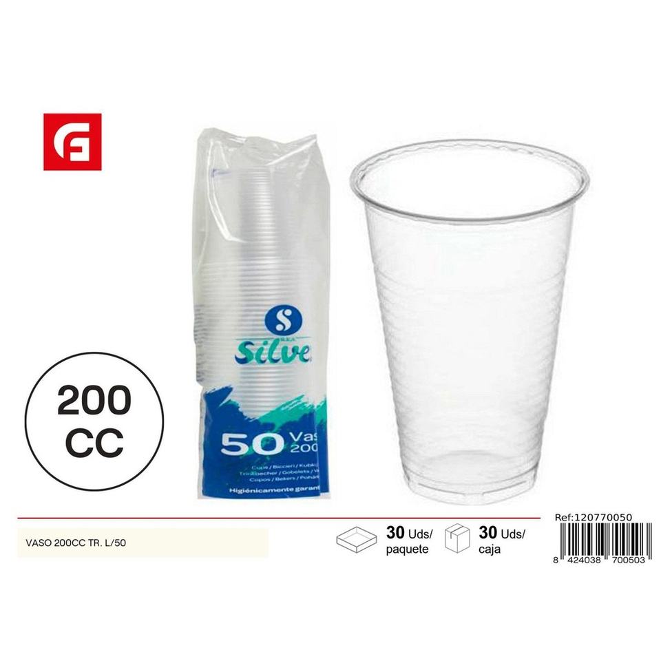 50 Units Disposable Plastic Cups 200cc Tea Cups & Saucers 8424038700503