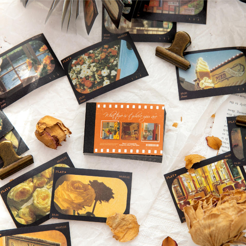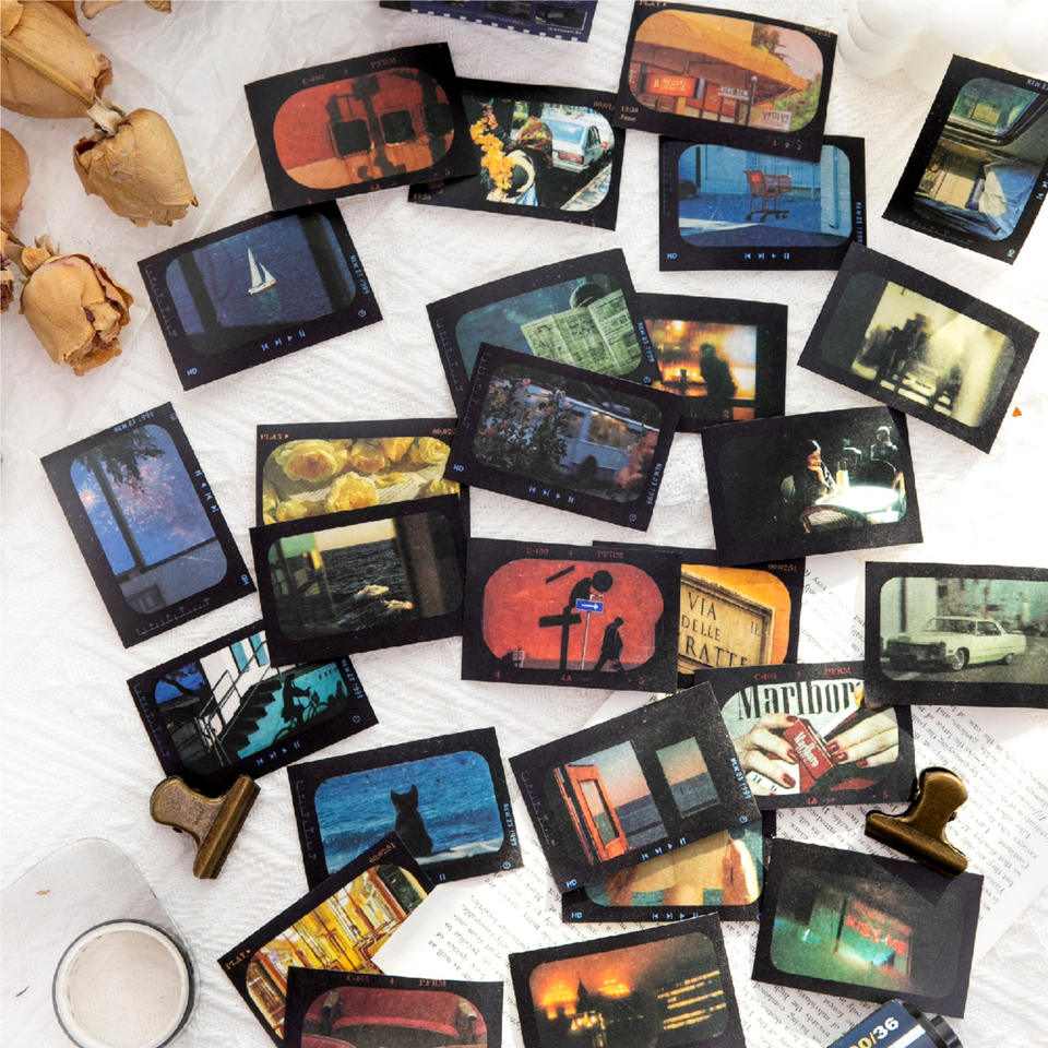 50 fogli/confezione Materiali fai da te con scenari retrò per quaderni di dimensioni ridotte, serie What Time Is IT Over There, adesivi per collage