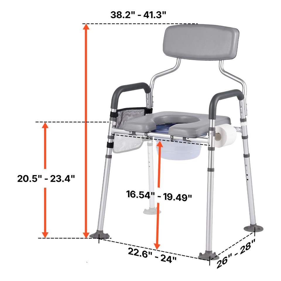 Sedia Comoda Portatile 4-in-1 con Capacità di 227 kg, Attrezzatura di Sicurezza per Bagno con Sedile e Schienale Imbottiti