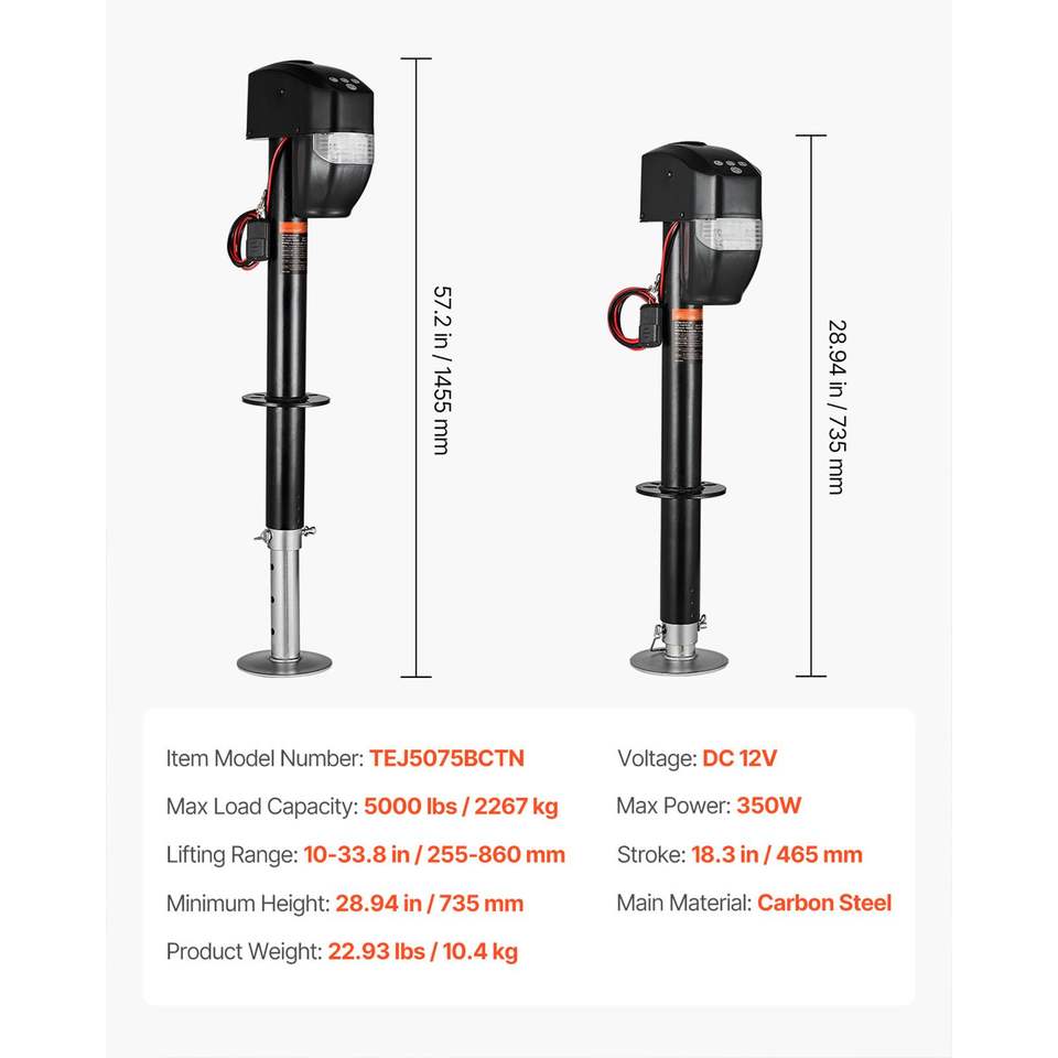 Martinetto Elettrico per Rimorchio da 5000 Libbre con Connettore a 2 Vie, Telecomando e Manovella per Rimorchi e Carrelli Utilitari