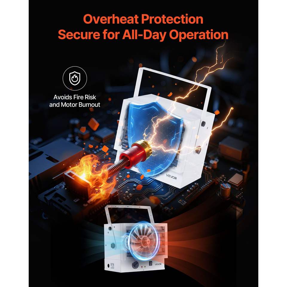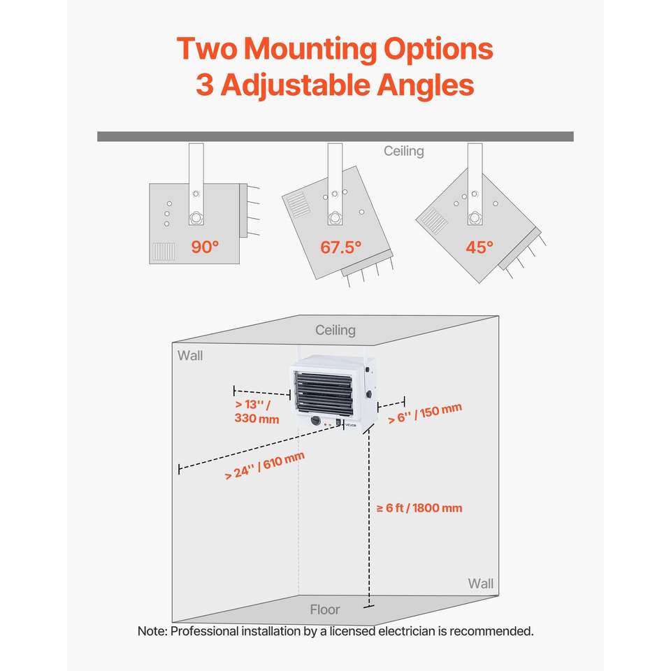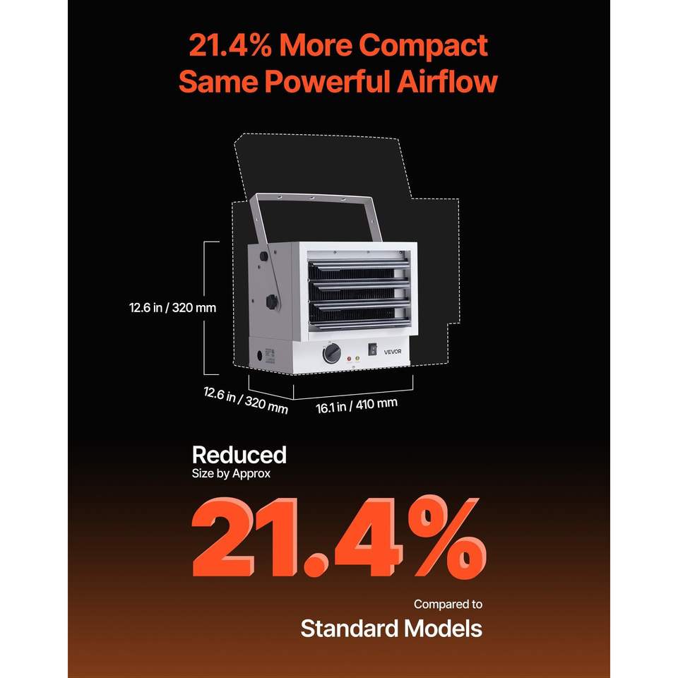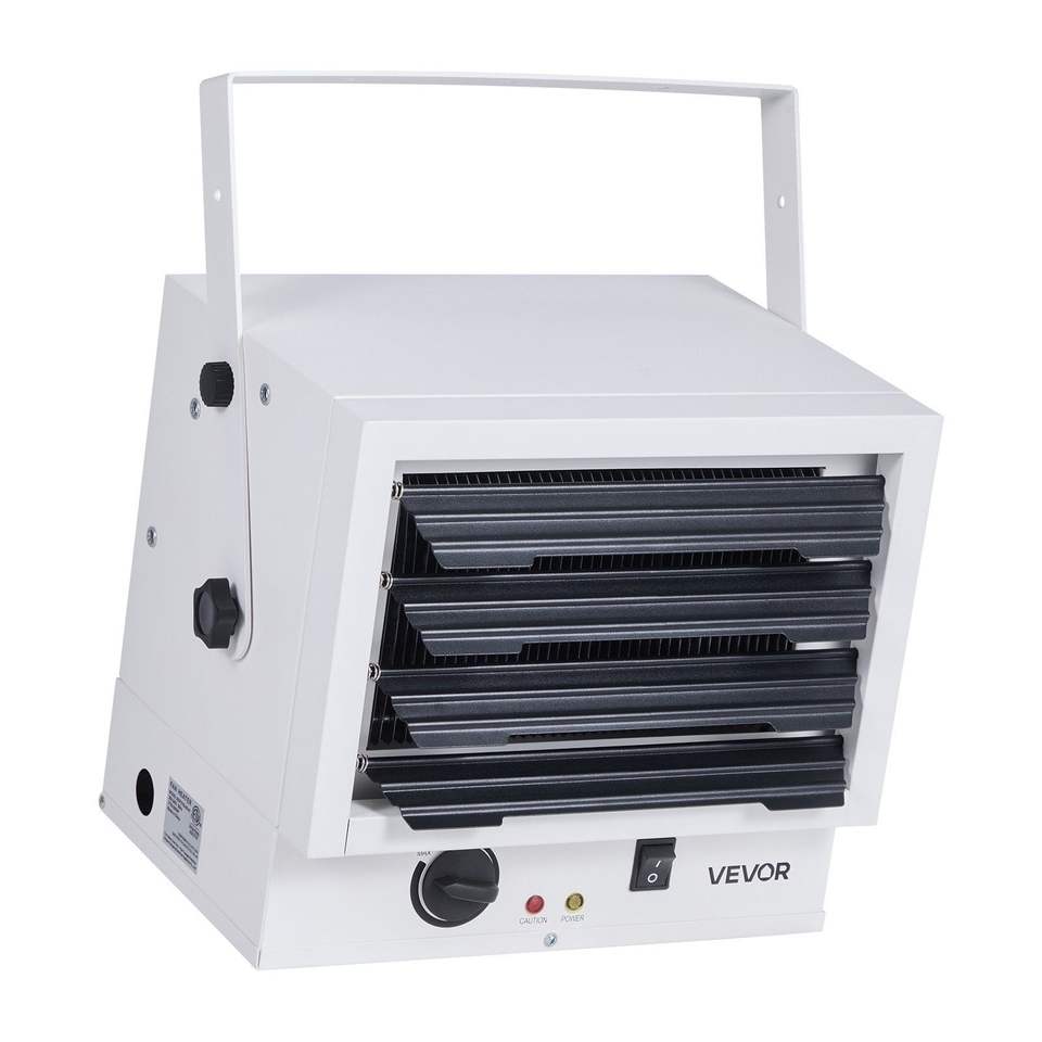 Riscaldatore Elettrico da Garage 5000 Watt, Montaggio a Parete/Soffitto, Protezione da Surriscaldamento, per 2 Auto, 3 Angoli Regolabili per Officina Ottimale