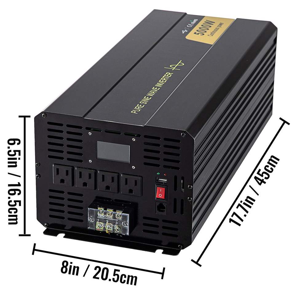 Inverter di Potenza a Onda Sinusoidale Pura da 5000 Watt, da DC 12V a AC 120V, Modello Auto D0100HRS256 con Display LCD e Porta USB, Telecomando