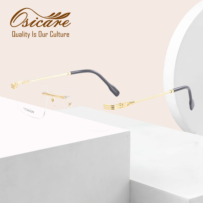 50032 Occhiali da Vista di Lusso Personalizzati con Logo, Montatura Senza Bordi in Titanio per Uomo, Vendita all'Ingrosso