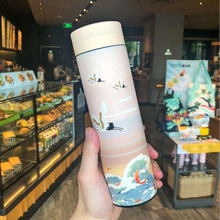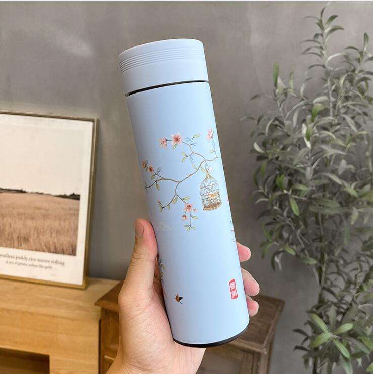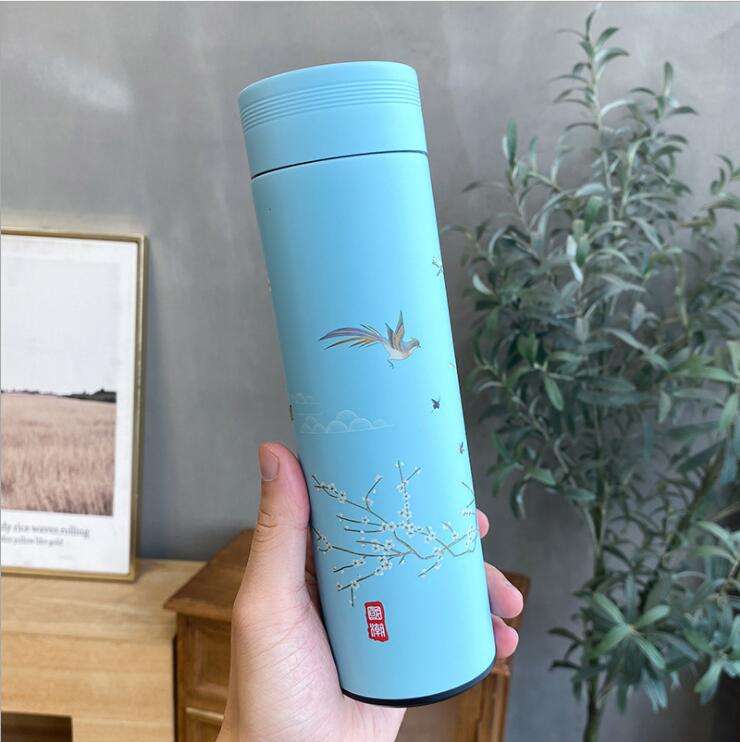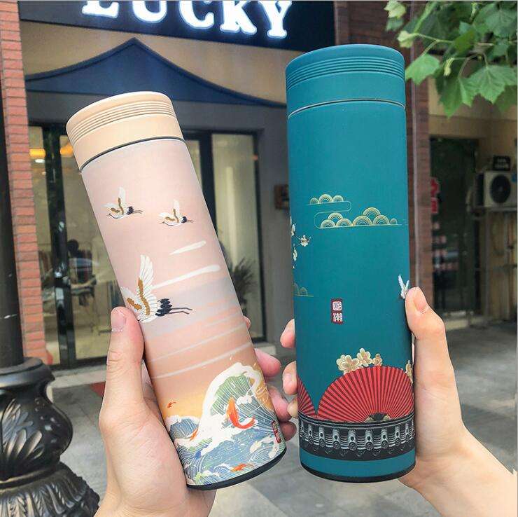 Thermos in Stile Cinese da 500ML, Tazza da Caffè in Acciaio Inox 304, Borraccia Termica con Infusore per Tè, Isolamento Termico 12-24 Ore
