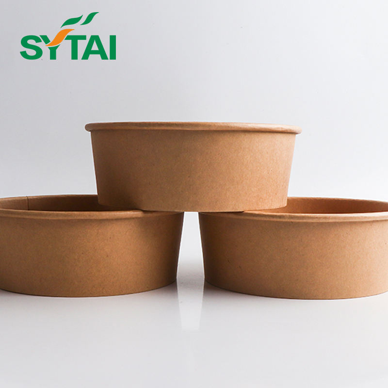 Ciotola di Carta Kraft Biodegradabile Monouso Rivestita in PLA a Base d'Acqua per Insalata con Coperchio, 500ml 750ml 1000ml 1100ml 1300ml