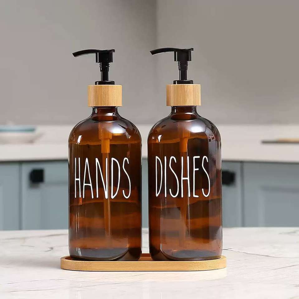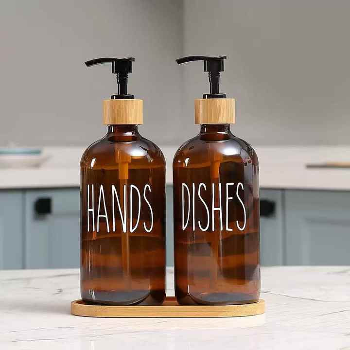 500ml Boston Glass Soap Dispenser Bottle Cross-Border In-Stock Press Pump for Shower Hand Sanitizer-Brown Bath Toilet Supplies